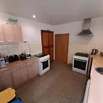 Eifel Garden Villa For Groups has an equipped kitchenette, including an electric kettle, a refrigerator, and an oven.